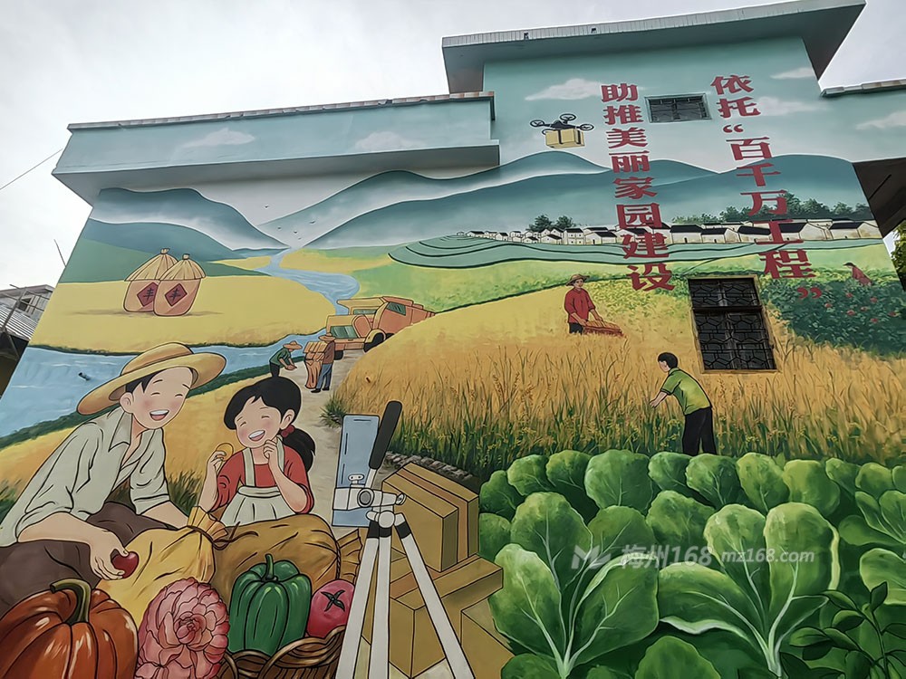 新陂鎮(zhèn)近年來結(jié)合社會(huì)主義核心價(jià)值觀、美麗鄉(xiāng)村、家風(fēng)家訓(xùn)等主題,在主村道、公共建筑、活動(dòng)廣場等的建筑墻面創(chuàng)作繪制墻畫10處,目前已完成5處。
