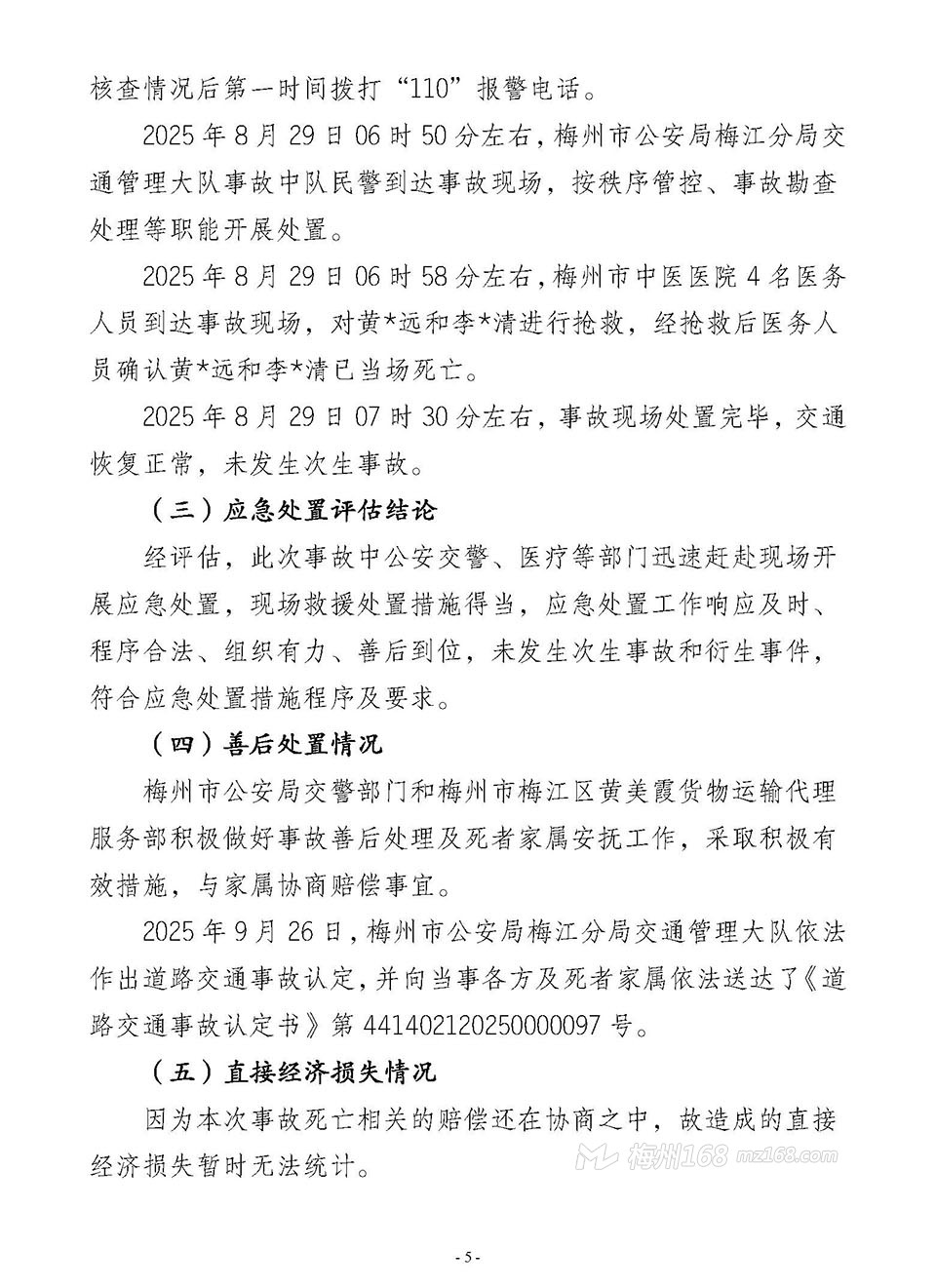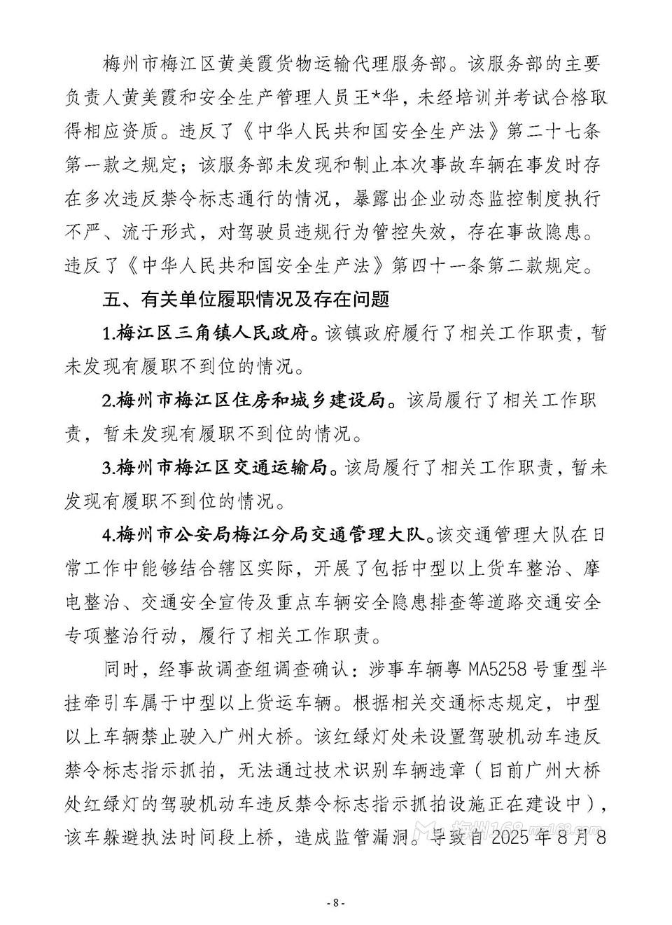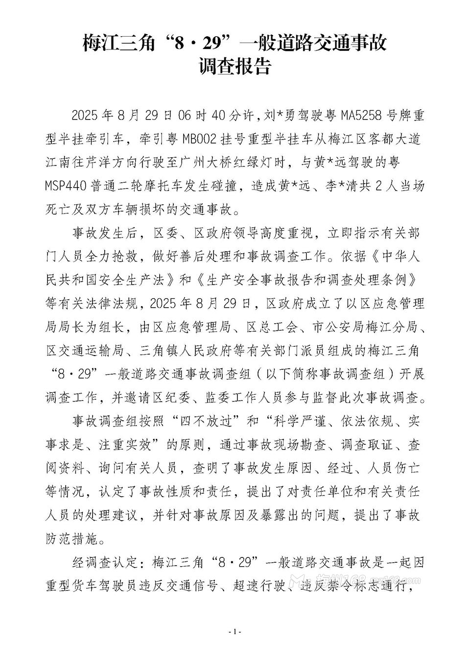 梅江三角“8·29”一般道路交通事故調(diào)查報(bào)告